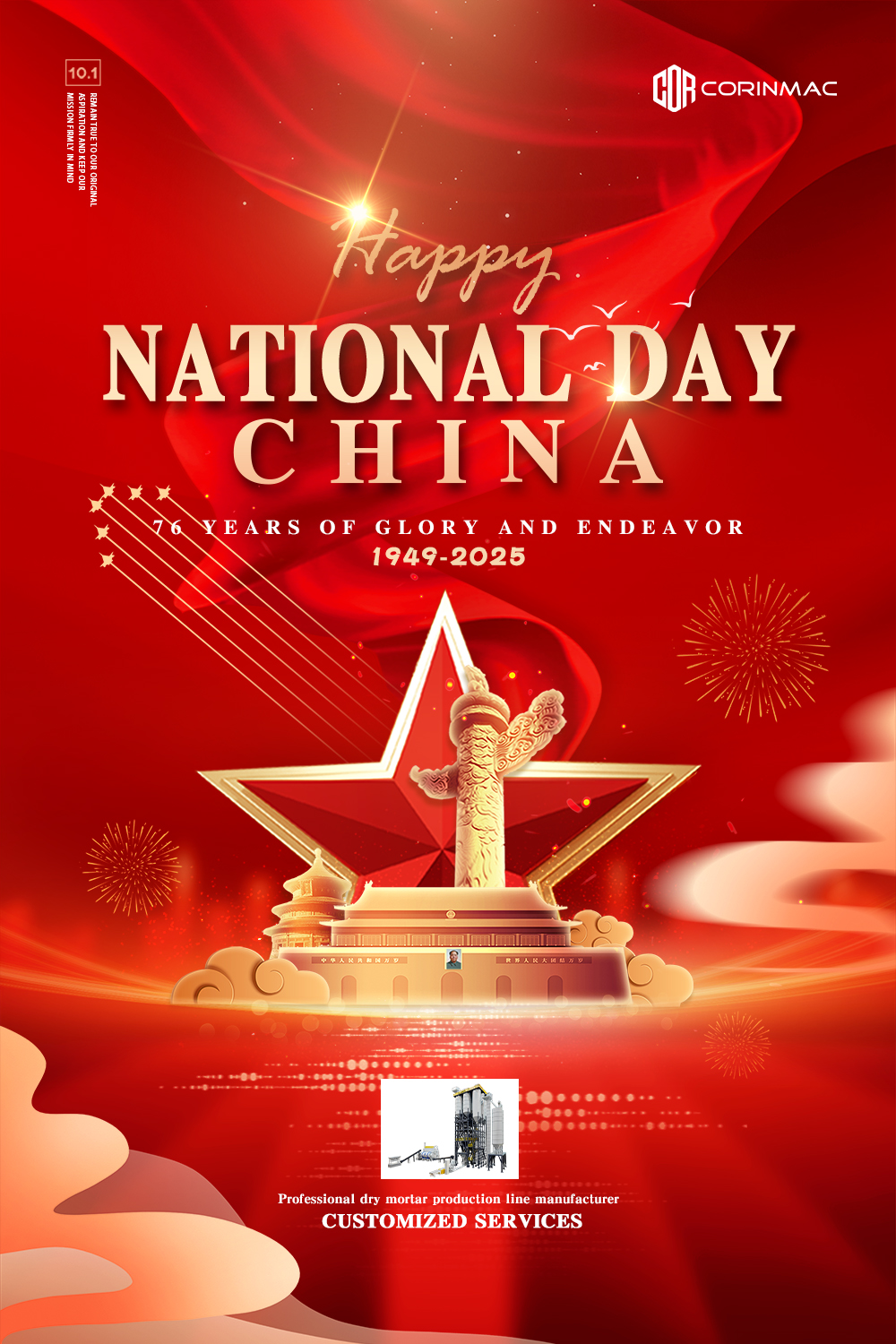 October 1st marks China’s National Day. CORINMAC wishes you a happy National Day!