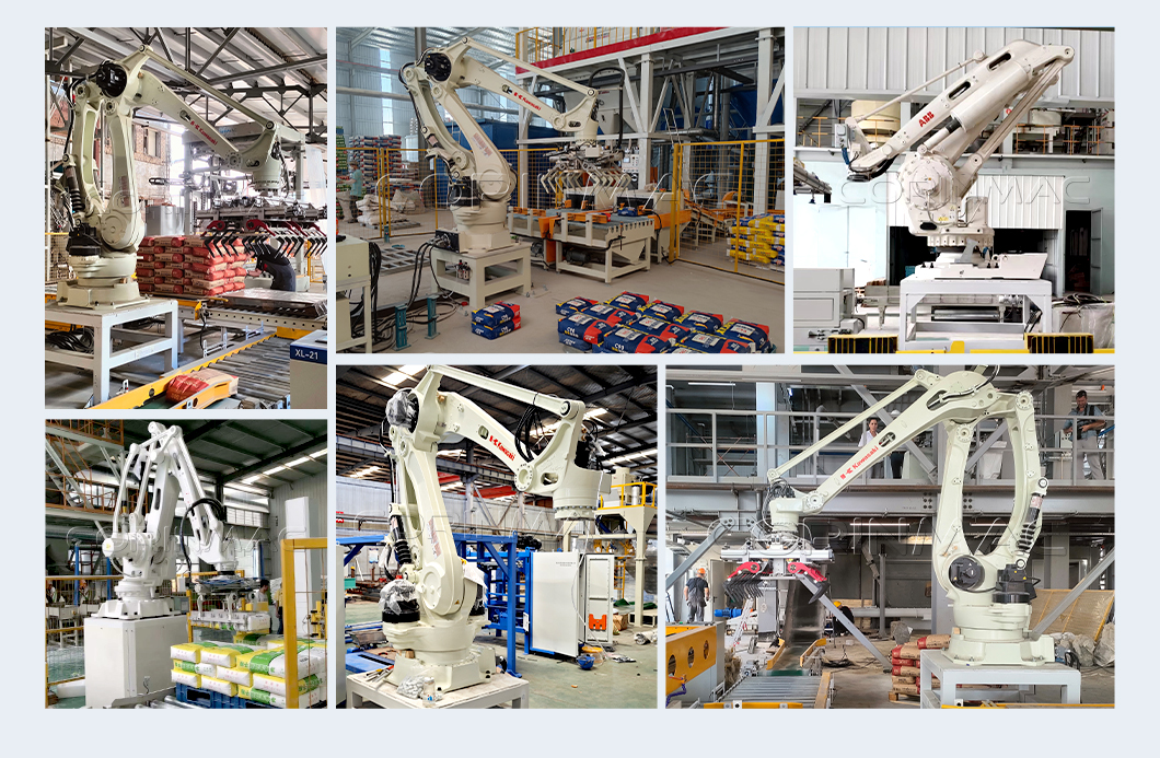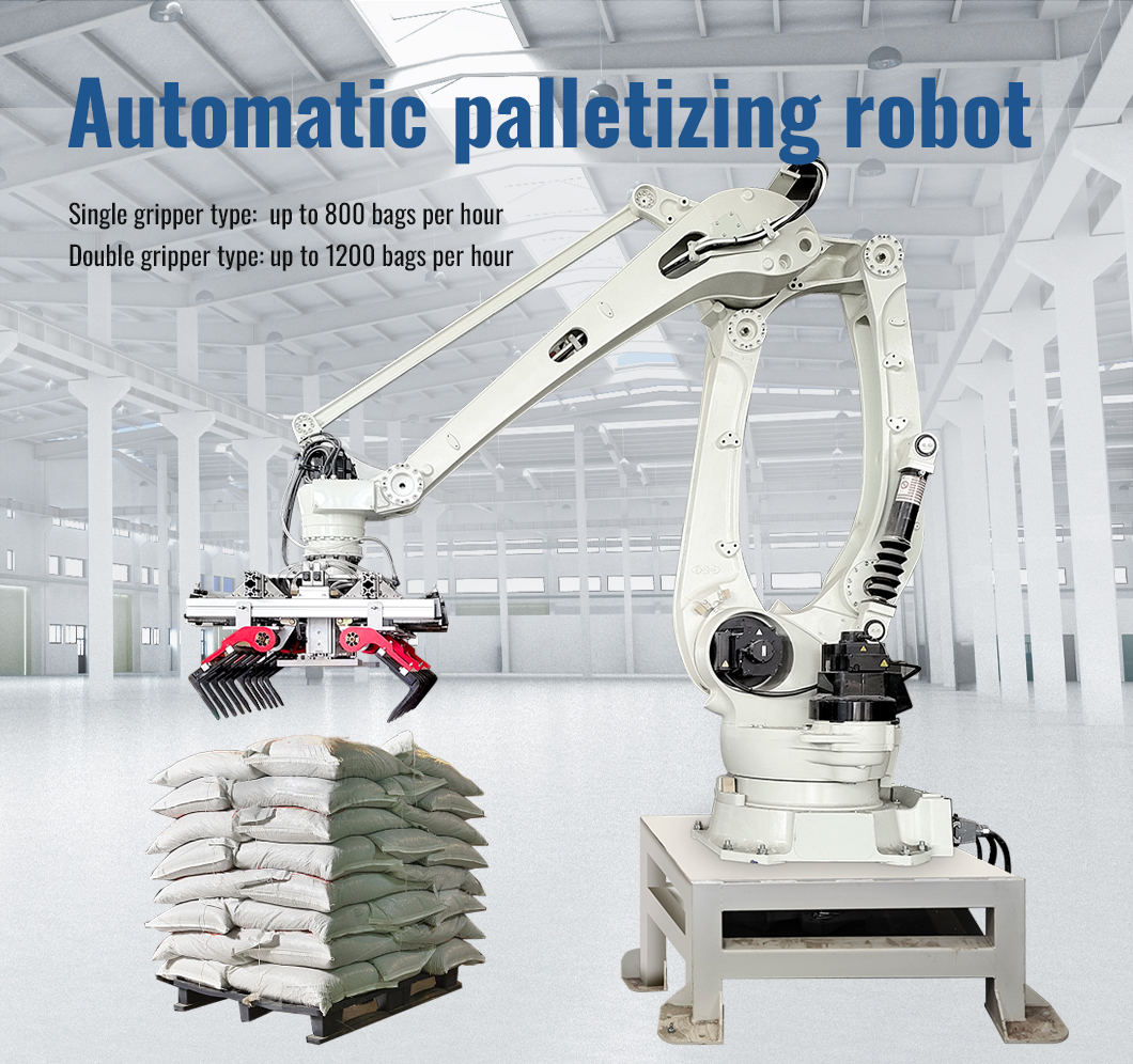 Automatic palletizing robot, also known as a palletizing robot arm, is a programmable mechanical device used to automatically stack and palletize products of different types and sizes on a production line. It can efficiently pallet products according to preset procedures and process requirements, and has the characteristics of fast, accurate and stable.