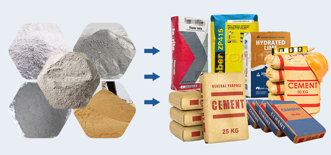 The valve bag filling machine is designed for packing bulk, powdery and granular products such as dry construction mixtures, cement, sand, lime, slag and other materials into valve bags weighing from 5 to 50 kilograms or more at a speed of up to 300 packages per hour.