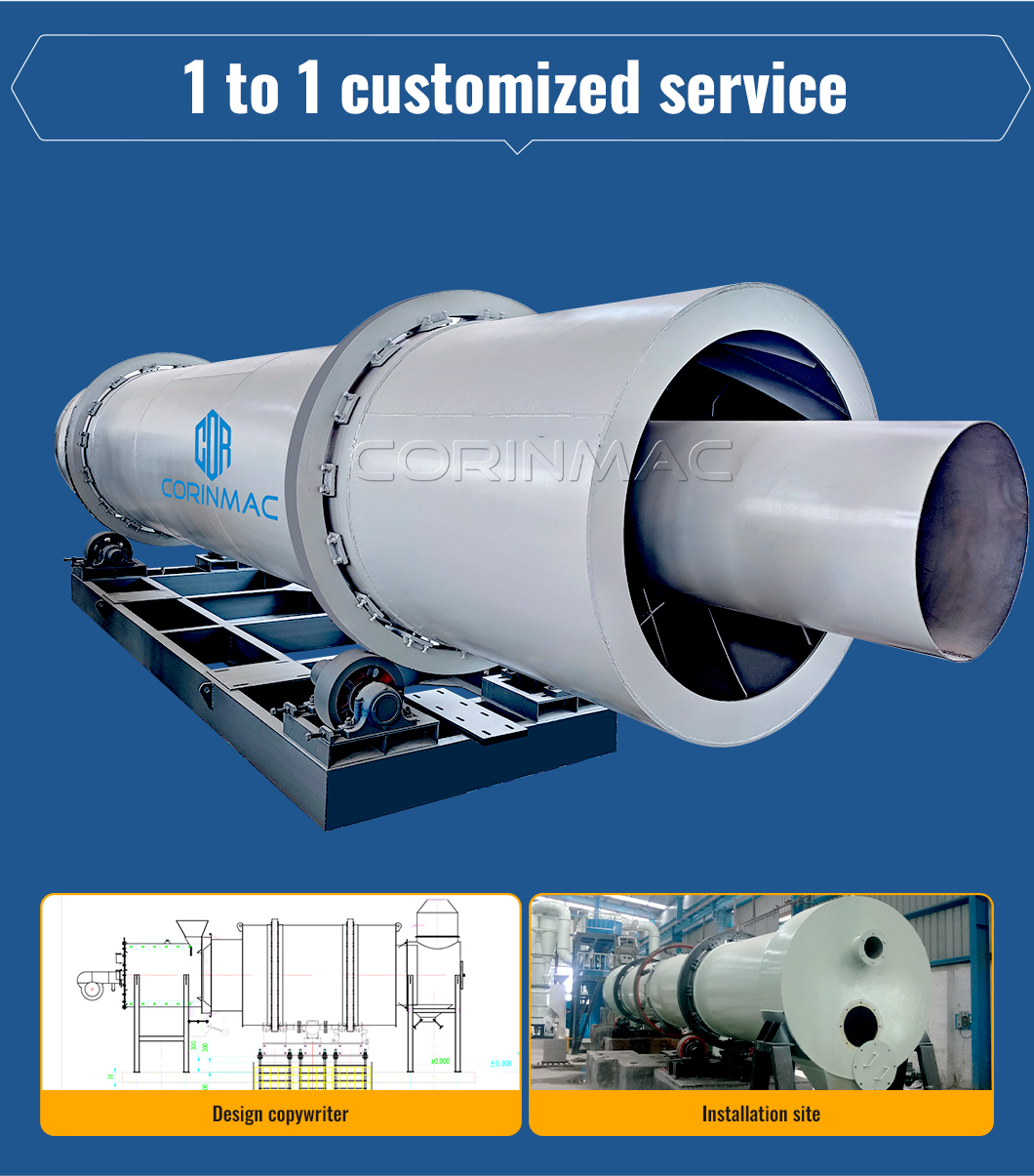 The single cylinder rotary dryer is designed for drying bulk materials in various industries: building materials, metallurgical, chemical, glass, etc. On the basis of heat engineering calculations, we select the most optimal dryer size and design for customer requirements.