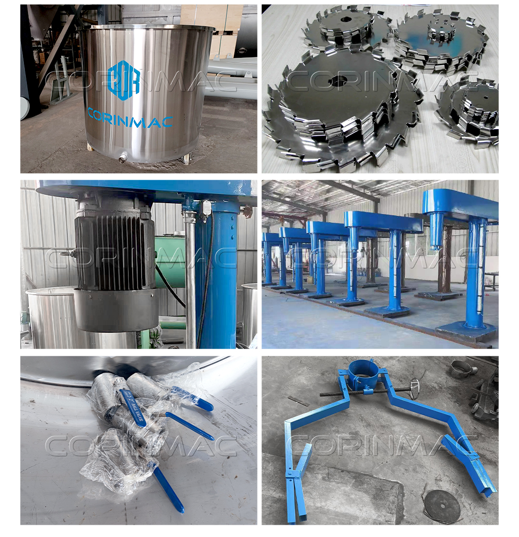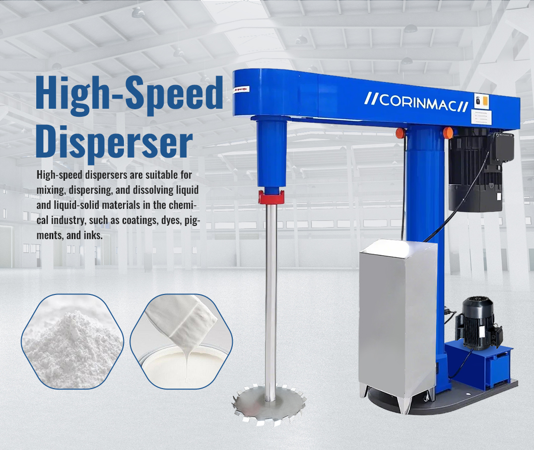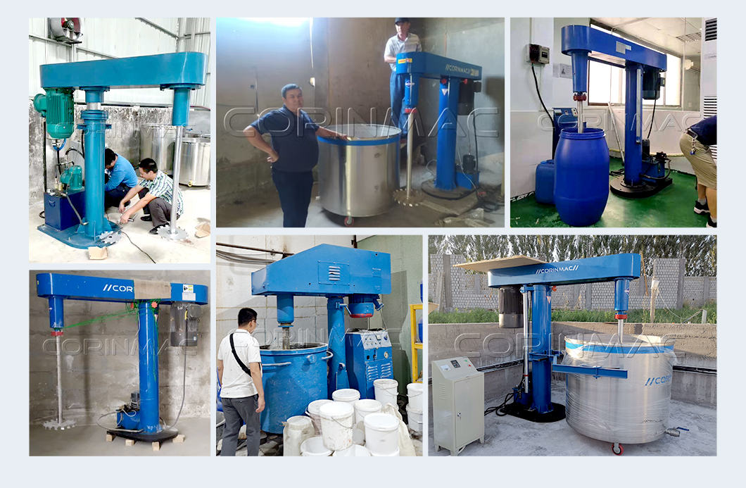 The disperser is suitable for the production of various materials, such as latex paint, industrial paint, water-based ink, pesticide, adhesive and other materials with a viscosity below 100,000 cps and a solid content below 80%.