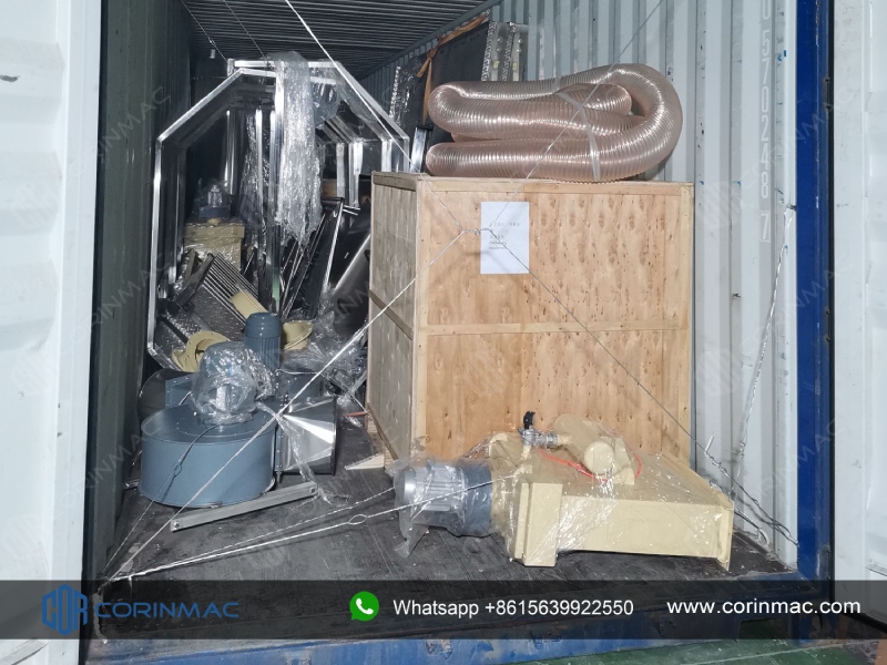 Cement mortar equipment shipped this time including finished product hopper, weighing hopper, screw conveyor, additive storage bin, dust collector, packaging machine, bag feeder, pallet conveyor line, stretch hooder, automatic pallet dispenser, high-level palletizer, incline conveyor belt, inkjet printer, flat conveyor belt, squaring unit, checkweigher, curved conveyor belt, receiving conveyor belt, roll-fed packaging machine, big bag packing machine, air compressor and spare parts etc.
