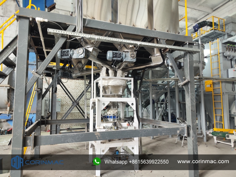 In the panoramic view of the production line taken on-site, the gray equipment bodies paired with striking yellow safety guardrails constitute the core aesthetics of industrial production; the orderly arrangement of equipment such as dual-station packaging machines, mixer, and dust removal system showcases the neatness and efficiency of the intelligent production line; the focused figures of the technicians further demonstrate CORINMAC's responsibility and commitment to "deeply cultivating overseas markets and serving the world." Ultimately, the entire production line performed excellently in both no-load trial operation and load testing, with all indicators meeting or exceeding customer expectations, successfully passing acceptance.