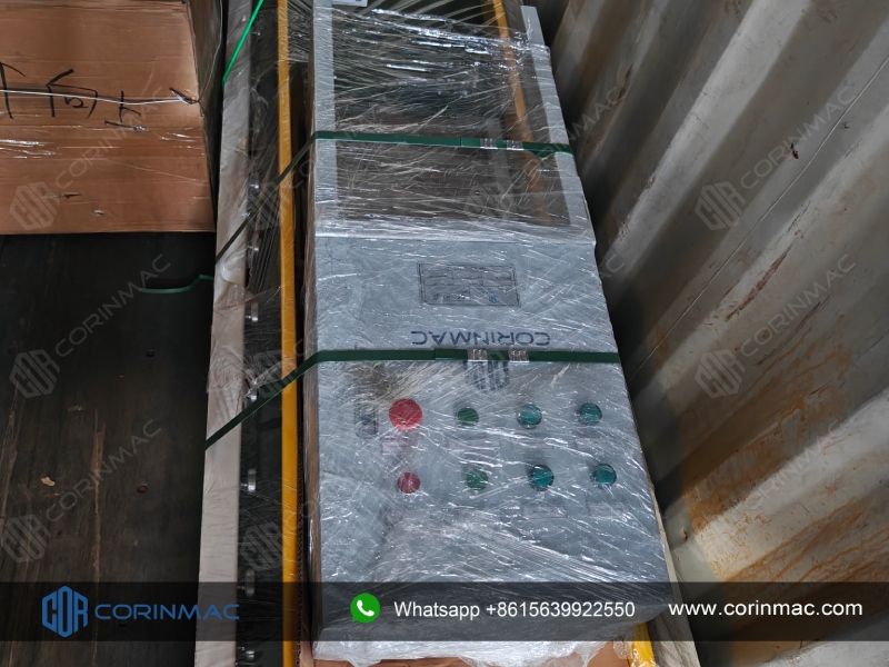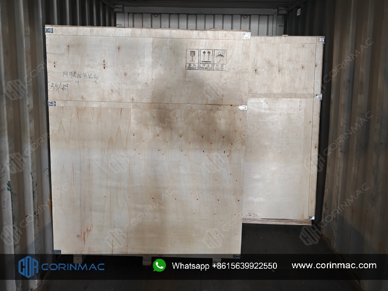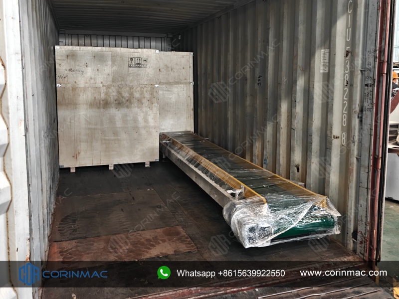 On November 22, 2025. CORINMAC's customized air flotation packaging machine, horizontal finished product conveyor, inclined conveyor, control cabinet and spare parts have been successfully loaded into container and delivered to the UAE.