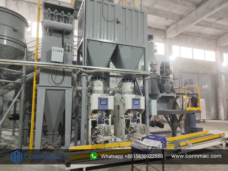 Automatic Packaging and Palletizing System: Integrating a dual-station valve bag packaging machine, conveyor line, and supporting palletizing equipment, it completes the automatic metering, filling, sealing, and palletizing of finished mortar, achieving seamless integration of "packaging-palletizing."