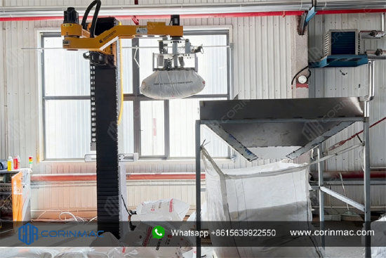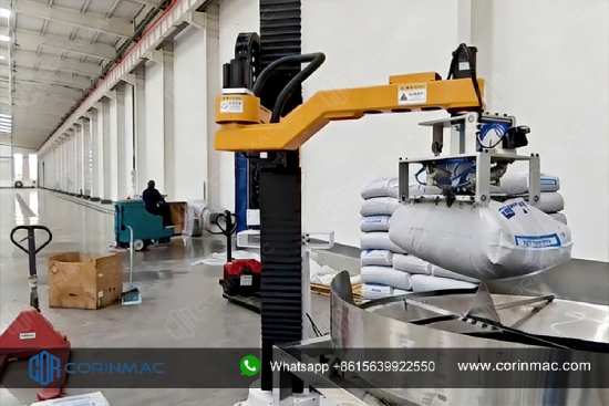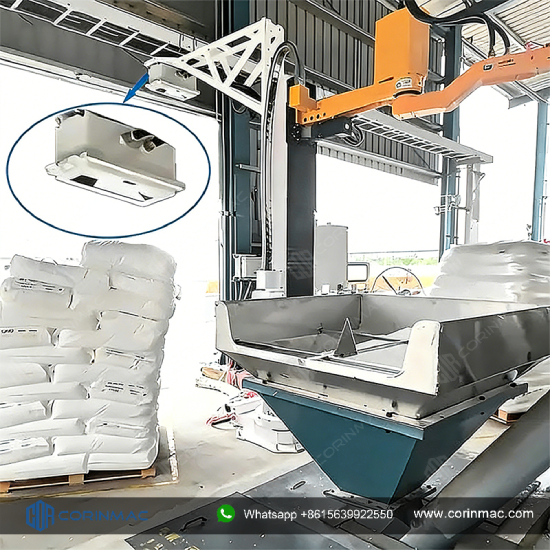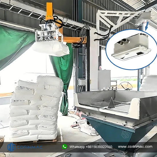 The rotatable and telescopic cantilever arm, combined with precise positioning, allows for flexible adjustment of the working angle, adapting to various specifications of materials such as 25kg toner bags, cement bags, and palletized materials, reducing changeover time to within 10 minutes. A single unit can replace 2-3 workers, increasing efficiency by 3-5 times compared to manual labor, making it suitable for large-scale continuous production.